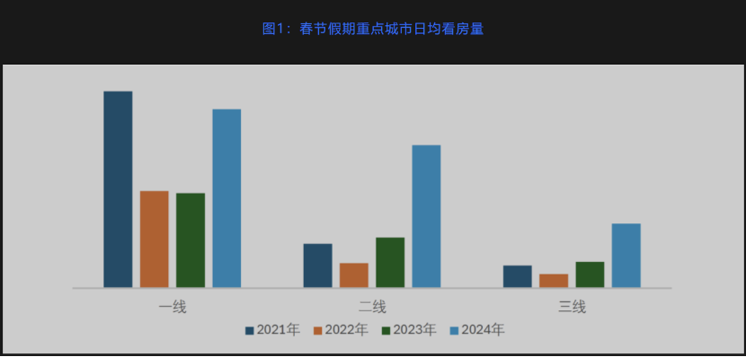 具体结果是: 1)新房方面: 22城新房日均成交2.2万方,较23年(近年最高点)下滑49%,较疫情前19年下滑22%; 分线来看,一二线(8城)日均成交0.3万方,同比下滑79%,三四线(14城)日均成交1.9万方,同比下滑33%。 2024年的春节新房情况创下2017年以来最低水平。 2)二手房方面: 75城中介二手房日均成交157套,23年法定假期(清明、五一、端午、十一、元旦)日均成交1558套。对比2023年的节假日,绝对成交数量要低不少。 广发的统计里提到了一个很重要的概念是转化率,这和看房量有直接关系。 看房量大,不代表后续成交量就一定多。 根据广发的统计,2024年春节期间来访转化率仅为2.6%,23年法定假期平均来访转化率为3.4%,24年元旦假期来访转化率达4.1%。 广发的二手房统计里面,没有春节同期的多时间对比,但补充上了转化率这一重要数据。 看房多,转化率低,说明观望情绪浓厚。 另外根据平安证券的统计,即使春节为每年二手房的淡季,但今年春节整体热度和情绪与往年相比仍处于较低水平。 以 15 个样本城市看二手房成交情况,春节期间 (2 月 9 日至 17 日)农历同比约-6.1%。